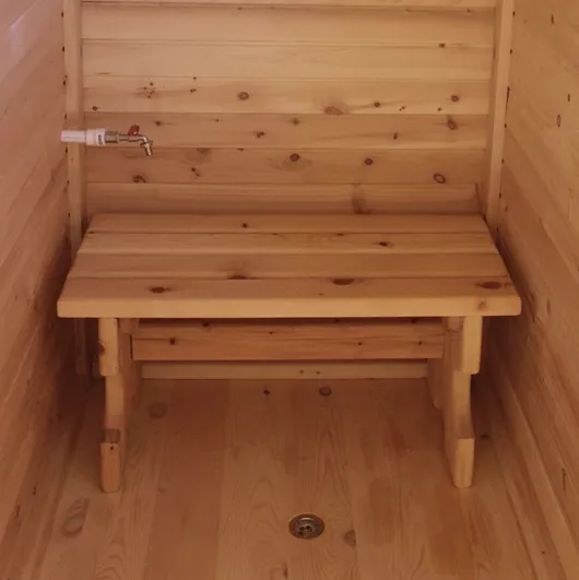 Обращаем Ваше внимание, что в стандартную комплектацию бани входят лавки в парной с обеих сторон. Дополнительно можно заказать полок открытого или закрытого типа!