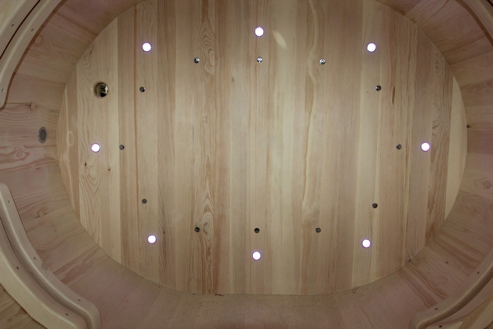 Эффектная подсветка, посредством встроенной, влагозащищённой светодиодной ленты класса IP68. Идеально подходит для круглых купелей. Источник света скрыт от глаз, яркость освещения и цвет можно менять с пульта на расстоянии до 5 метров. Также есть автоматический режим плавной смены цветов, похожий на северное сияние. Хотите удивить близких и друзей? Тогда это ваш вариант!