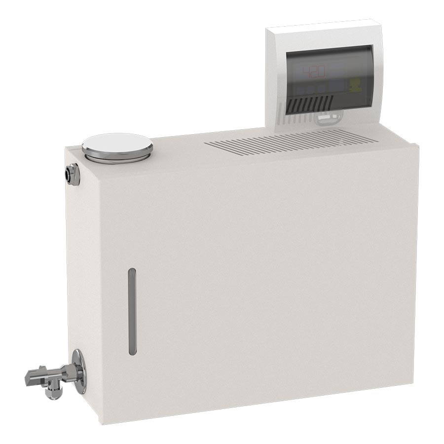 Парогенератор накопительный, 1,6 кВт с встроенным цифровым пультом управления Прибор служит для создания пара путем закипания воды. В металлическом корпусе парогенератора находится бак для воды со съемной аромаемкостью в виде сеточки. Рядом располагается индикатор в виде трубки, благодаря которому осуществляется визуальный контроль за уровнем воды. Парогенератор накопительного типа работает от электричества и не требует подключения к водопроводу. Вода в него добавляется самостоятельно. Управление парогенератором осуществляется за счет встроенного пульта, с помощью которого устанавливается температура, мощность и время процедур парения. При превышении заданной температуры и низком уровне воды устройство отключается автоматически. Целебный пар поступает в фитобочку по паропроводу и насыщает организм человека полезными веществами.