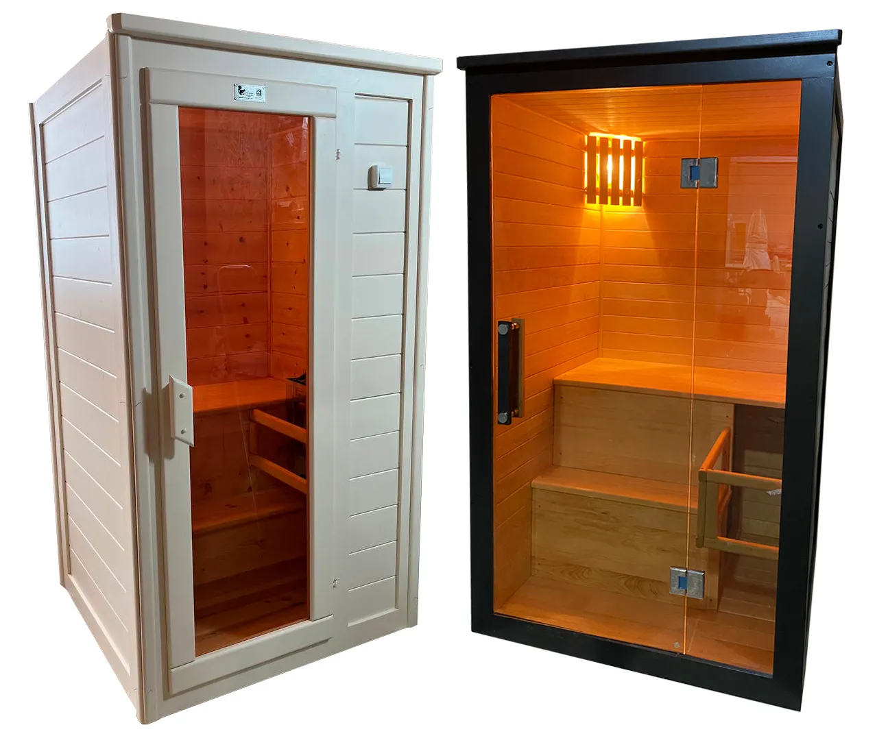 Это специально оборудованная деревянная кабина для сухого и влажного парения. Электропечь нагревает пространство внутри и позволяет сбрызгивать камни водой, слегка увлажняя воздух. Такая процедура позволяет избежать перегрева. Двойные стенки кабины с теплоизоляционным материалом удерживают тепло. Установка сауны в угол позволяет рационально использовать пространство помещения. Финская сауна с электропечью подойдет, как для домашнего использования, так и для коммерции. Доставляется в разборном виде щитами, собирается по инструкции с помощью шуруповёрта.